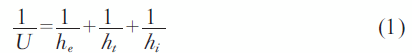 hi———玻璃室內表面至內部空間的換熱系數,hi=8 W/m2K