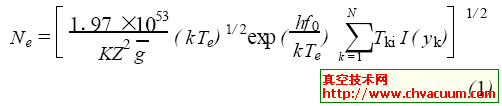 等離子體中存在著大量的帶電粒子,它們之有著各種復(fù)雜的相互作用,它們所輻射的電磁波具有很廣闊的頻率范圍。如何通過這些輻射得到等離子體的成分(電子密度、電子溫度、離子溫度、離子密度等) 及其分布是等離子體診斷的一個重要方面。對于黑體來說,不必知道輻射的詳細(xì)過程,可直接采用普朗克輻射公式來描述各種溫度下的輻射譜。但在真空中的等離子體,不是完全吸收體,須考察其具體的輻射過程。輻射過程有軔致輻射和復(fù)合輻射兩種。軔致輻射就是由作熱運動的電子和離子碰撞時電子在庫侖場中被加速或減速產(chǎn)生的輻射。復(fù)合輻射是通過電子和離子的碰撞使彼此間結(jié)合起來而生的輻射。等離子體的連續(xù)輻射總強度是由軔致輻射強度和復(fù)合輻射強度組成的。在真空開關(guān)電弧中,等離子體輻射主要是由軔致輻射決定的,且自由電子的速度遠(yuǎn)遠(yuǎn)大于離子速度,韌致輻射主要由電子產(chǎn)生。采用量子力學(xué)方法及Abel 變換處理可得到電子密度的表達(dá)式 :