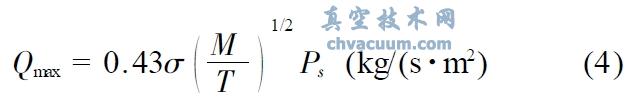 式中σ 為凝結系數,M 為材料分子量,Ps 為在溫度T 下的蒸氣壓力。