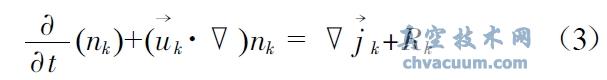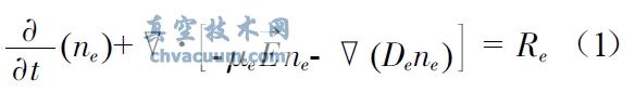 其中k=0、1,當k 為0 時nk 為中性粒子,k 為1 時,nk 為離子j軆 k,代表粒子擴散通量Rk 是反應源項。