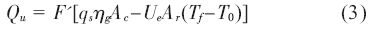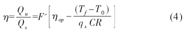式中F'為槽式真空管熱管集熱器的效率因子;Ar為真空管內(nèi)管面積;(Tf為獲得的集熱介質(zhì)的溫度(水或水蒸氣);T0為環(huán)境溫度。