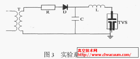 觸發極擊穿的過程產生大量的初始等離子體。而影響真空擊穿的因素很多,譬如觸發針幾何形狀和大小、間隙的大小、材料、老煉作用、操作條件和真空度等。這里主要考慮兩個因素,即材料和間隙。主電極材料主要是銅,已知銅在真空中與絕緣強度(間隙為1mm) 的關系為42kV/ mm, 觸發間隙0.5mm ,所以為有效觸發TVS ,可以估計觸發脈沖電壓峰值應達到21kV 左右。
