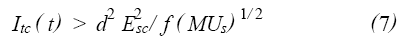 其中f 為離子電流比例,一般為015~1 ,與觸發材料相關; It 為觸發電流; S 為鞘層下的電極面積; e 、ne 、ve 和Te 分別為電子的電量、密度、熱速度和溫度; k是玻爾茲曼常數。離子電流由觸發電流決定的, 而電子電流服從玻爾茲曼分布, 并隨鞘層電壓Us 的增加按指數下降。鞘層電流Is 可通過朗繆爾(Lang2muir) 公式與鞘層電場Es 關聯;當Es 達到一臨界值Esc時,就會擊穿并產生陰極斑點,TVS 主間隙開始導通。Esc取決于主間隙陰極材料及其表面狀態。設鞘層電流以離子電流為主, 則引發主間隙擊穿的臨界觸發電流Itc為