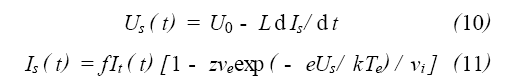 L 為振蕩電路電感。假設ve/ vi ≈100 , Te ≈1.3 ×104k , z≈1 , Us (t) 僅為U0 與It 的函數。