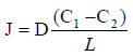 式中C1 、 C2 ——進(jìn)入和離開薄膜材料表面的穩(wěn)定濃度;