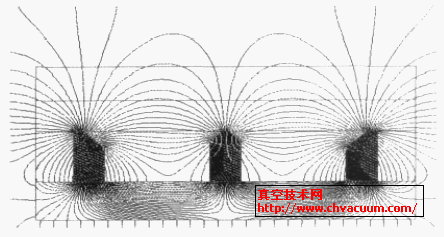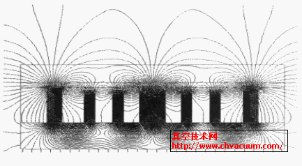 圖1 磁鋼排布和磁力線分布 圖2 通常磁鋼排布形成的刻蝕