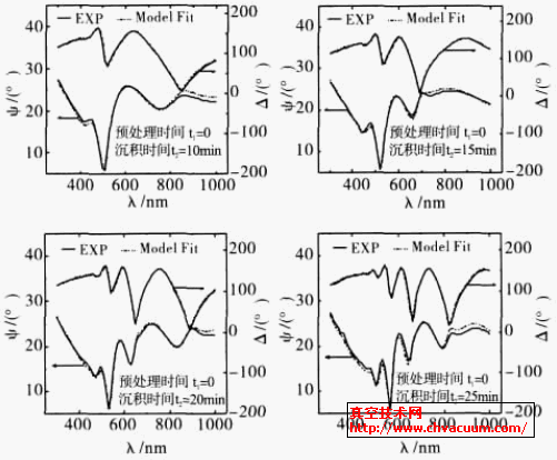 為了了解襯底表面預處理時間對薄膜生長行為的影響,我們對樣品做了橢圓偏振光譜測試,如圖3 所示。