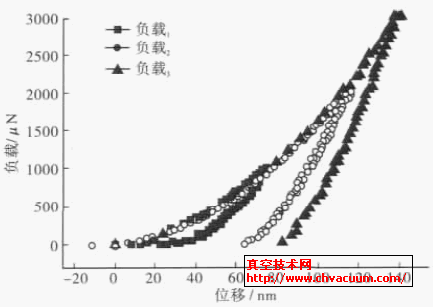 通過納米硬度計(jì)獲得摻磷納米硅薄膜的載荷與壓深曲線如圖3 所示。
