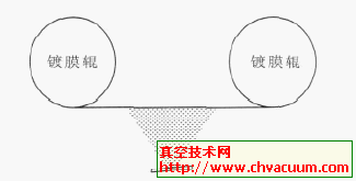 鍍膜輥是設(shè)備關(guān)鍵件之一,是鍍膜速度和張力檢測和控制的基準,它的結(jié)構(gòu)設(shè)計和加工質(zhì)量直接影響鍍膜質(zhì)量。鍍膜輥內(nèi)部設(shè)計空心多頭螺旋冷卻通道,通過旋轉(zhuǎn)接頭外接冷熱交換機組,提高冷卻效果,使其工作溫度保持在-15℃到-25℃,防止基材在鍍膜前后受熱變形。表面光潔度高,動平衡要求嚴格,是保證鍍膜質(zhì)量的必備條件。設(shè)備采用雙冷卻鍍膜輥懸空平展鍍膜結(jié)構(gòu)(如圖3),使受鍍膜材(尤其是CPP)在經(jīng)過蒸發(fā)源時平展懸空而過,并且只在兩鍍膜輥公切線部位進行鍍膜。這種獨特結(jié)構(gòu)設(shè)計既增大了蒸發(fā)面積,提高鍍膜速度,又可以增加薄膜在鍍膜前后的冷卻效果,減少熱變形,防止卷繞傳動過程中的拉伸起皺,更重要的是避免了二次蒸發(fā)造成的膜層重疊,從根本上解決了CPP 流延塑料薄膜鍍膜過程中出現(xiàn)亮暗條紋線的難題。