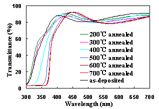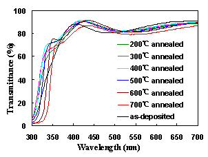 圖1.1 GZO透明導電薄膜在氮氣氛圍退火后的透過率