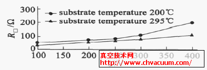 圖1 其他參數一定的條件下基底溫度與表面電阻R□的關系