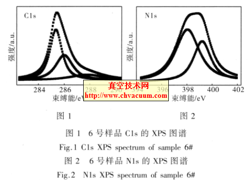 圖中285eV 附近的峰最強,說明薄膜主要為非晶態碳結構。薄膜內氧含量來自于薄膜上表面有很多懸掛鍵,吸附了空氣中的二氧化碳和水所致。