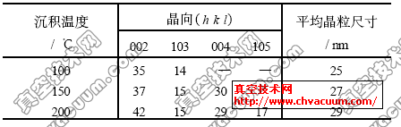 對不同衍射峰分別用謝樂公式計算可得到各個晶向的晶粒尺寸,反映晶粒在不同晶向上的生長情況。一般將各晶向的晶粒尺寸求平均即得到薄膜的晶粒大小。由表1 可看到,隨著襯底溫度的升高,制備樣品晶粒大小由25nm增大到29nm,晶粒尺寸偏小。其中,〈002〉晶向的晶粒尺寸由35nm增長到42nm,而其它晶向的晶粒尺寸較小且沒有明顯的增長,說明薄膜中的晶粒沿〈002〉晶向高度定向生長。分析認(rèn)為,晶粒尺寸較小來自于兩方面的原因:一是考慮到襯底為普通的載玻片,薄膜沒有進(jìn)行高溫退火,而CdCl2氣氛下的退火能顯著增強(qiáng)晶粒的尺寸 ;二是考慮到窗口層的需要,沉積時間短,CdS薄膜厚度較小,這也在一定程度上抑制了晶粒生長的時間和空間。