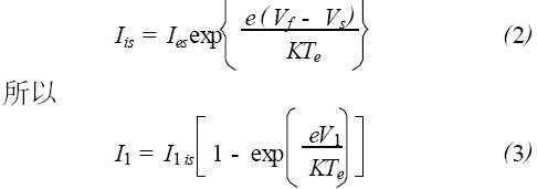 其中, I1is是探針1的飽和離子電流, I 1es是探針2 的飽和電子電流。V1是探針1 相對(duì)于懸浮電位Vf 的電位, Vs 是等離子體空間電位。由懸浮電位的定義式得