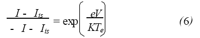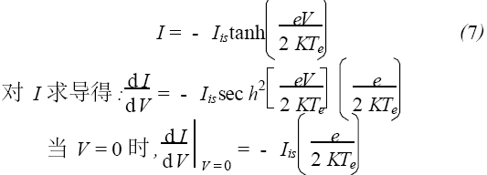 由上式可以看出:電子溫度Te可以用V=0時(shí)雙探針特征曲線的斜率求出。