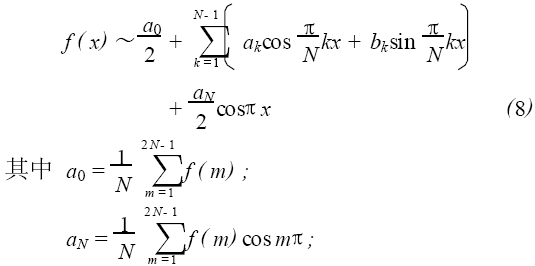 如果用函數(shù)f(x) 表示測(cè)量數(shù)據(jù)f(0),f(1), ⋯,f 2N-1)的變化規(guī)律,f(x)可以展開成傅里葉級(jí)數(shù)形式