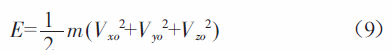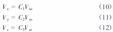 此時(shí)如果不產(chǎn)生新電子,碰撞為彈性碰撞,滿足動(dòng)量守恒定理;如果產(chǎn)生新電子,碰撞為非彈性碰撞。新電子速度大小和方向服從隨機(jī)數(shù)分布,生成隨機(jī)數(shù)C=rand[0,1],三個(gè)方向的速度大小如公式(10~12)所示