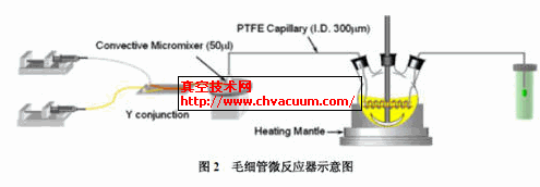 將ZDC(0.5 mmol)溶于2 mL TOP 中,與2 mL OLA混合作為硫源和鋅源。等體積的CdSe和ZnS 前驅體溶液以一定的流速通過微量注射泵注入反應器中,混合后進入聚四氟乙烯(PTFE)進行外敷過程。具體實驗裝置參見圖2。得到的量子點分散于氯仿溶液中。