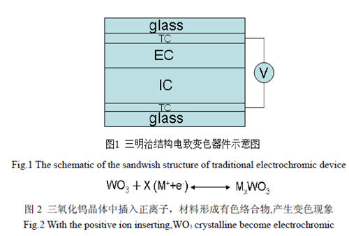2.1、傳統(tǒng)電致變色器件的結(jié)構(gòu)(以WO3電致變色薄膜為例)