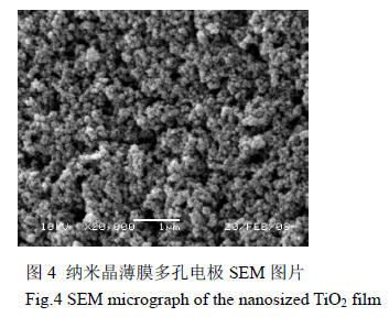 本實(shí)驗(yàn)所使用的TiO2工業(yè)用P25,平均粒徑為25-30nm,比表面積50/m2g-1,為銳鈦礦結(jié)構(gòu)和金紅石結(jié)構(gòu)相混合而成。實(shí)驗(yàn)中,2gTiO2粉末置于玻璃研缽中,加入2ml 含質(zhì)量百分比5%乙基纖維素的松油醇溶液和0.4ml 乙酰丙酮研磨均勻,當(dāng)TiO2粉末在漿料中分散均勻后,再加入8ml 松油醇并繼續(xù)研磨,直到其中無(wú)明顯團(tuán)聚顆粒,最后加入OP 乳化劑以促進(jìn)膠體在基片上的均勻分散。