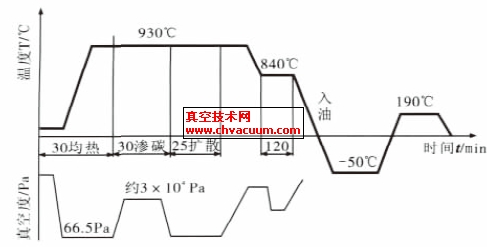 圖3 外圈20CrMnTi 真空滲碳、淬火工藝曲線