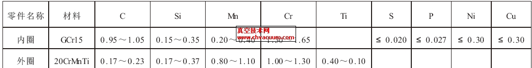 (3)外圈是合金滲碳鋼,經過真空氣體滲碳后可得到均勻的滲碳層,表面淬火和滲碳處理同時進行;