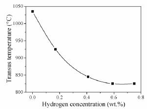 圖2 復(fù)合材料相變溫度與氫含量的關(guān)系