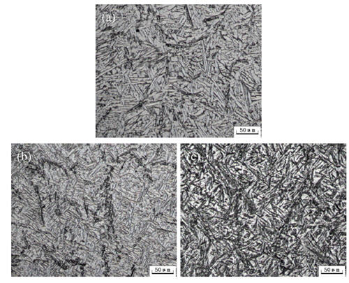 相分析在Siemens D-500 X 射線衍射儀上進(jìn)行。光學(xué)金相試樣經(jīng)砂紙打磨和拋光,用Kroll 試劑腐蝕(成分為1-3 ml HF, 2-6 ml HNO3, 100ml水)。在Olympus BX41M 金相顯微鏡上進(jìn)行顯微組織觀察。