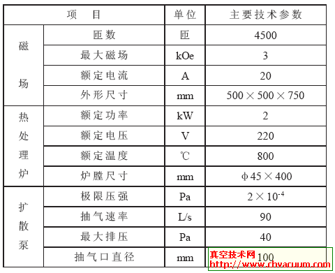 高真空磁場熱處理裝置的組成及主要技術性能參數