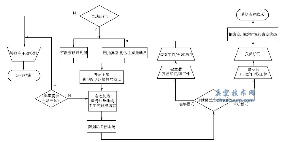 在用CX-Programmer 編程軟件編程之前,首先要分析真空釬焊爐PLC所實現的總體控制功能,繪制流程圖(圖3為設備控制流程圖) 。