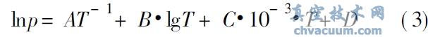 式中, p 為壓強, T 為溫度, A 、B、C 、D 為常數, 查熱力學手冊得到A 、B 、C 、D 值 , 可計算得到22 種雜質元素的蒸氣壓隨溫度變化曲線。