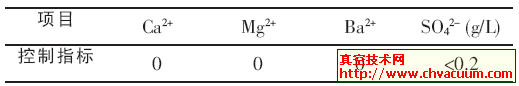1.3 鹵水凈化處理程序在鹵水凈化處理前必須將藥品配置槽清洗干凈,計量器具進(jìn)行校準(zhǔn)。通知化驗人員準(zhǔn)確分析出鹵水的現(xiàn)有成分, 根據(jù)粗鹵中Ca2+、Mg2+、SO42-的含量,依據(jù)化學(xué)離子反應(yīng)方程式: