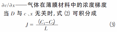 式中C1、C2———進入和離開薄膜材料表面的穩定濃度