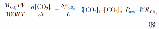 由此可得到如下的O2 和CO2 的質量平衡方程。這兩式均為非穩態模型方程,是一次導數的微分方程。用計算機就可很方便求解。