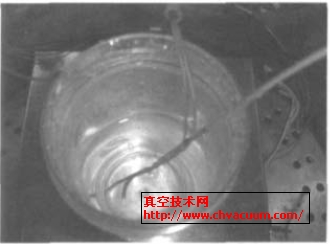真空冷卻室為圓筒形,采用不銹鋼材料,內壁拋光,內徑400mm,長度470mm。上部為玻璃蓋板,便于真空冷卻過程的實時觀察,也可拍照或錄像。真空冷卻室下部有凝水器,其作用是將蒸發的水汽凝結下來,只有少部分水氣以及不可凝氣體才由真空泵排出,減少真空泵的負荷。真空冷卻過程結束后,凝結水由放水閥排出。凝水器內的低溫載冷劑由制冷系統提供,通過循環泵使低溫載冷劑循環。
