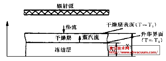 ① 升華干燥階段是傳熱控制過(guò)程, 即干燥層導(dǎo)熱能力小于質(zhì)量的擴(kuò)散能力, 干燥速度由傳導(dǎo)熱量的速度決定。