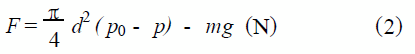 式中d —吸盤口的有效內徑(m) ; P0 —環境大氣壓力(105 Pa) ; P —吸盤入口區域的氣體平均壓力(Pa) ; m —工件樣品的質量(kg) ; g —重力加速度(9.8 m·s - 2 ) 。樣品發生運動的初始條件(以下標s 為標記)為