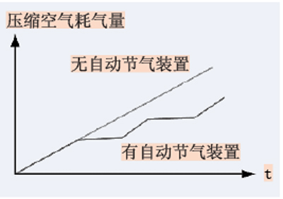 圖3 自動(dòng)節(jié)氣裝置的性能曲線(xiàn) KE系列的真空泵與選配的自動(dòng)節(jié)氣裝置一起使用時(shí)能夠比傳統(tǒng)的真空系統(tǒng)節(jié)約大量的壓縮空氣耗氣量