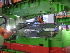 Lāpple集團公司的子公司Heibronner公司,多年來一直是汽車工業的合作伙伴,是沖壓技術、模具技術和金屬成形加工技術的專家。在Lāpple集團中,有175臺沖壓生產設備,其中75%的是公司自己研制生產的。通過這些自主研發的沖壓生產設備,可以按照用戶提出的特定生產要求進行沖壓試驗,完成用戶要求的鈑金件的試制。這種沖壓試驗也適用于模具和鈑金件的傳送裝置,因為對于許多生產汽車零部件的用戶來講,鈑金件的質量要求是非常高的。其他的要求還包括小批量生產時具有極高的靈活性。對于需要經常更換產品的沖壓生產線,不僅僅要經常更換沖壓模具、更換沖壓生產線的NC數控程序,機器人和鈑金件傳送機構的機械手也需要經常更換或者重新配置。