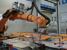 機械手由輕結構鋼管構件、真空吸盤、真空器、電磁控制閥、真空開關等零部件組成。由于嚴格按照工件和用戶的要求設計機械手,所以在設計時采用了標準化的機械人連接接口,而且機械手的專用真空吸盤可以適合各種不同工件。企業在實踐中積累了豐富的機械手設計經驗,所設計的機械手完全的能與板材吻合,并能毫無問題的與機器人連接,具有很高的剛性和板材輸送精度。由于機械手的手臂采用的是鋼管結構件,因此運動控制離合器、連接件和橫拉桿等部件的重量都減輕了不少,這也進一步地提高了機械手的運動性能,堅守了板材工件運送加速和減速運動過程中的彈性抖動。
