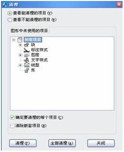 技巧一:PURGE命令。這可能是大家最了解的一個"瘦身"方法。采用中望CAD 2009中的PURGE命令可以把圖形中沒有使用過的塊、圖層、線型等全部刪除,可以達到減小文件的目的。