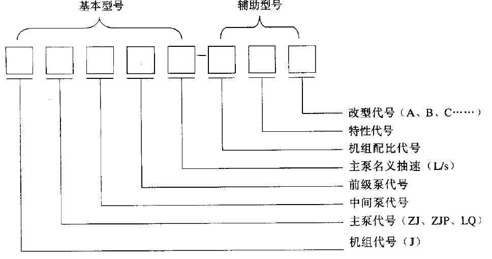 機(jī)組型號(hào)由基本型號(hào)和輔助型號(hào)組成,其表示方法如下: