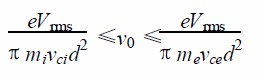 Roth 等在實驗室建立了一套大氣壓DBD 等離子體發生裝置,并初步實現了空氣中均勻DBD。他提出“離子捕獲機制”來解釋空氣中均勻DBD 的產生。該機制認為,如果選擇合適的工作電壓頻率,在此頻率范圍內間隙中放電產生的離子來不及在外加電壓的半周期內全部抵達阻擋介質,則將在氣體間隙中留下空間電荷,下一個半周期放電過程將受此空間電荷的影響,使得放電空間的擊穿場強明顯降低,從而形成均勻放電。Roth 提出產生均勻DBD 的頻率范圍可用如下公式表示: