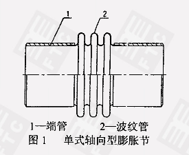 由一個波紋管及結構件組成,主要用于吸收軸向位移而不能承受波紋管壓力推力的膨脹節(見圖1)。