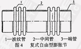 由中間管所連接的兩個波紋管(及控制桿或四連桿)等結構件組成、主要用于吸收軸向與橫向組合位移而不能承受波紋管壓力推力的膨脹節(見圖4)。