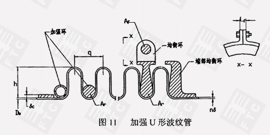 為提高膨脹節的承載能力,可設計帶加強環或穩定環的膨脹節,其結構示意 如圖11 所示。