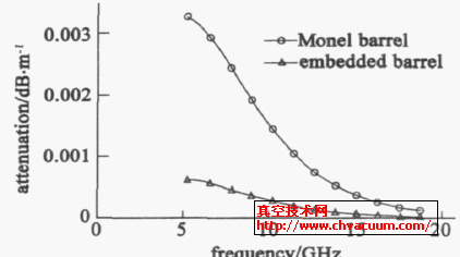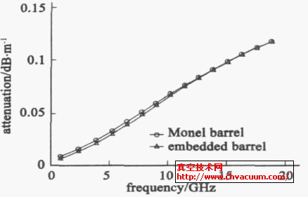 由以上的研究可知,采用不同材料的管殼對慢波系統的高頻損耗的影響比較小。采用具有高導電能力的金屬內殼可以在一定程度上降低慢波組件的高頻損耗,其改善作用在低頻段更為明顯。