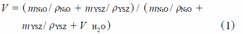 將凝膠注模成型工藝用在SOFC元器件成型和制備方面是最近的事情,San Ping Jiang等采用凝膠注模成型工藝制備了NiO/YSZ陽極支撐的燃料電池,發現添加5%(質量比) 分散劑聚丙烯酸銨,pH=10時,固含量在55%~80% 的NiO/YSZ陶瓷料漿粘度達到最低值,但是并未對NiO/YSZ陶瓷料漿固相含量進行優化實驗。