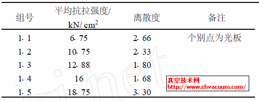 從各組試驗的表面狀況和抗拉強度結果分析,1.1組,1.2組粉料經燒結后表面質量狀況及抗拉強度都不理想。1.3組、1.4組、1.5組粉料粒度組成的配置方式燒成金屬化層,從性能檢測所得的數據可以看出,是比較好的,能滿足金屬化產品的質量要求。