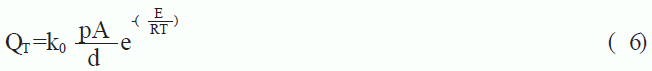 式中k0 為與氣體- 配偶有關的滲透常數; R 為摩爾氣體常數, 8.31J/( mol·K) ; T 為絕對溫度, K; E 為滲透活化能, J/mol。